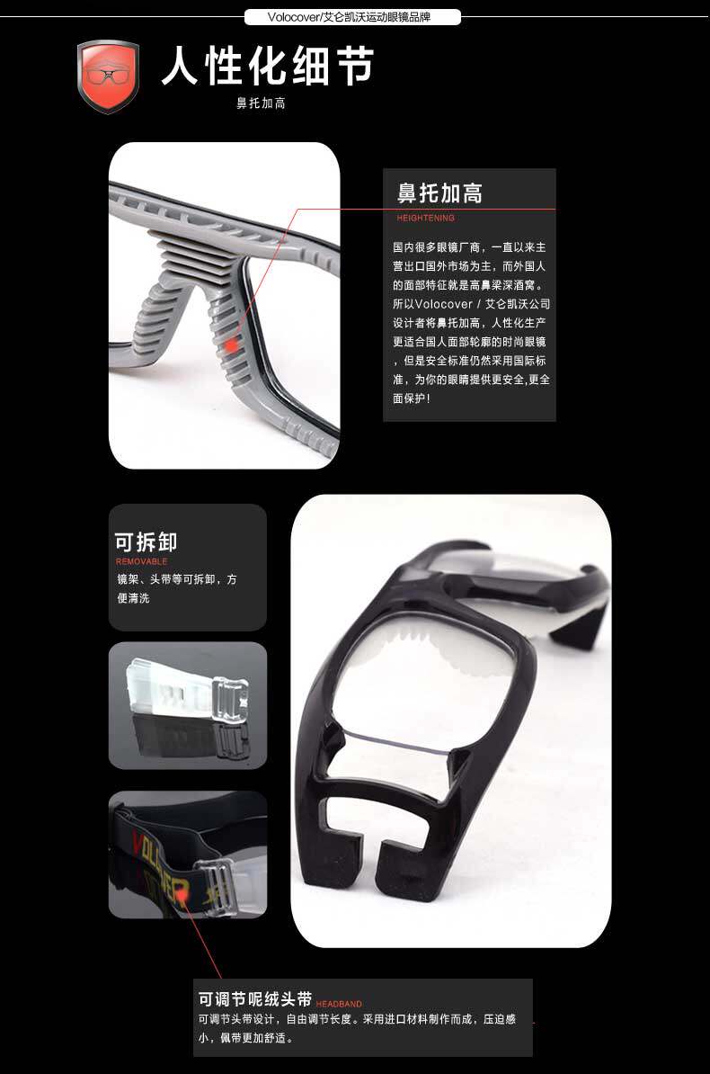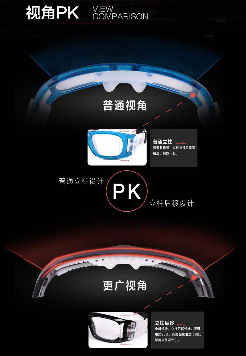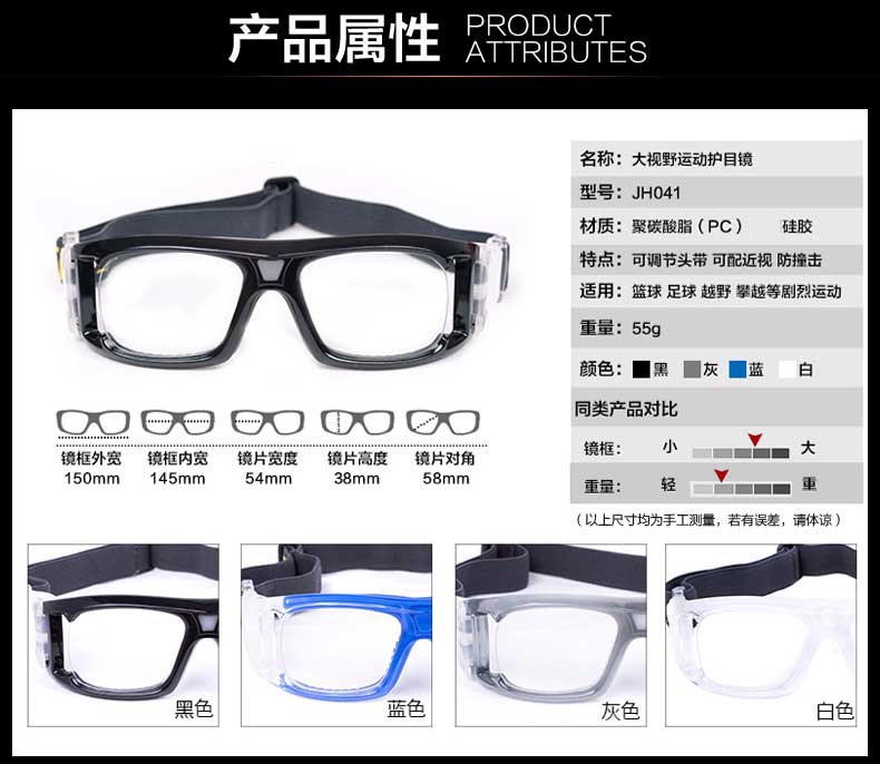 Отличное поле видения баскетбольные бокалы футбольные зеркальные кроссовки и глаз против защиты от коллирования могут быть оборудованы с близким зрением и анти -ффо -тканью