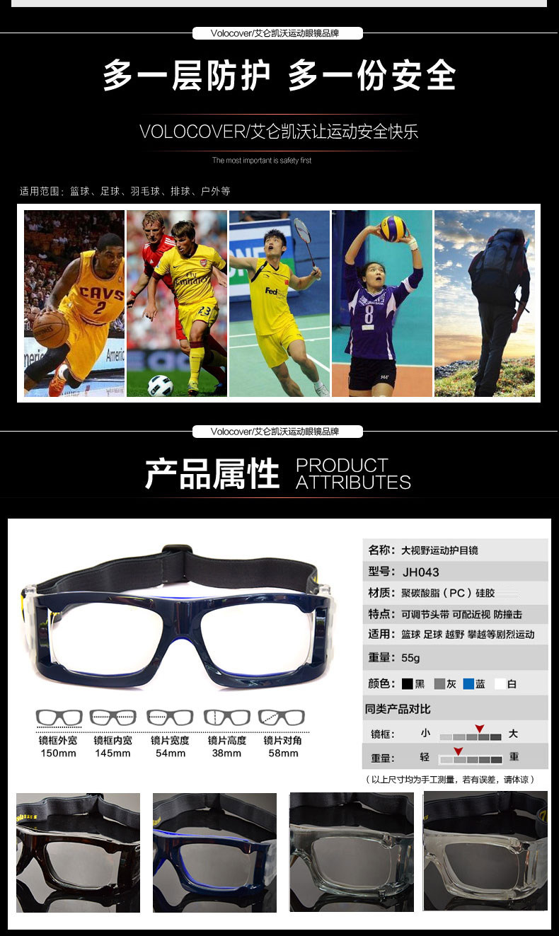Volocover Vision Basketball Glasses Football Mirror Anti -Ippact может быть оборудован миопией для отправки анти -ффо -ткань