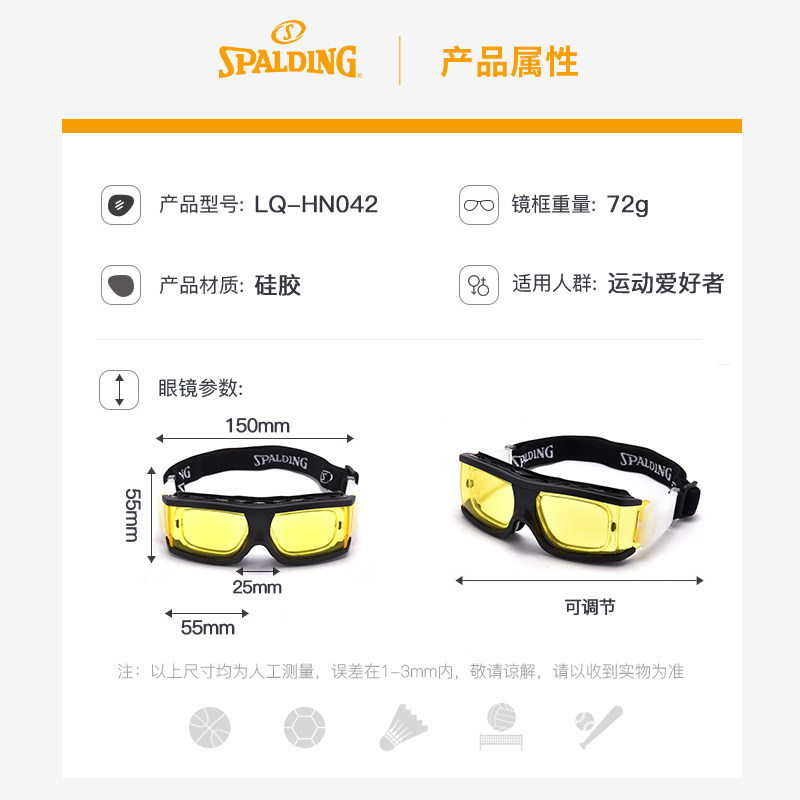 Spalding Sibadine Professional Explosion -Проятные туманные анти -мотиционные миопийские очки футбольное зеркало играют в баскетбольные глаза