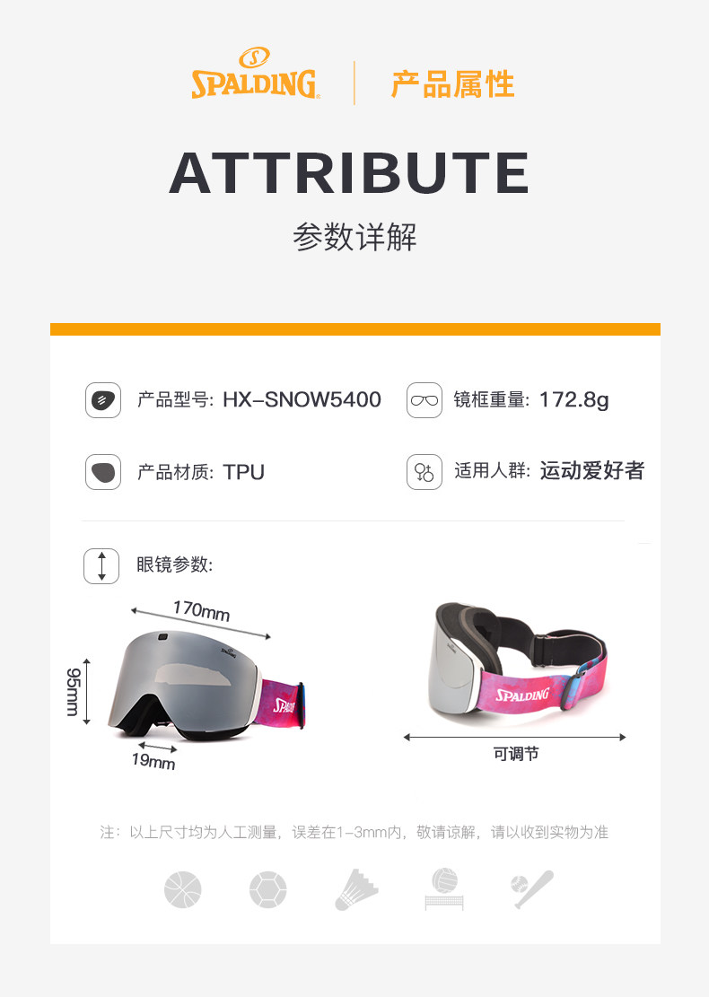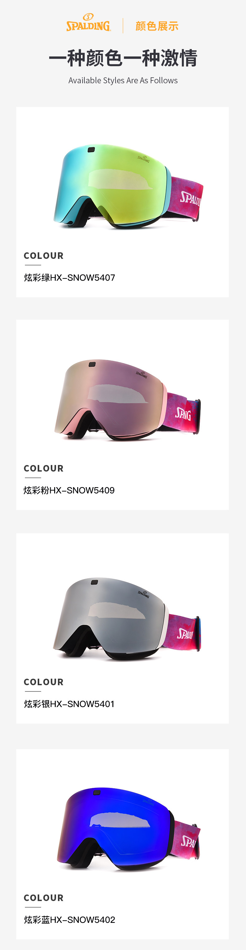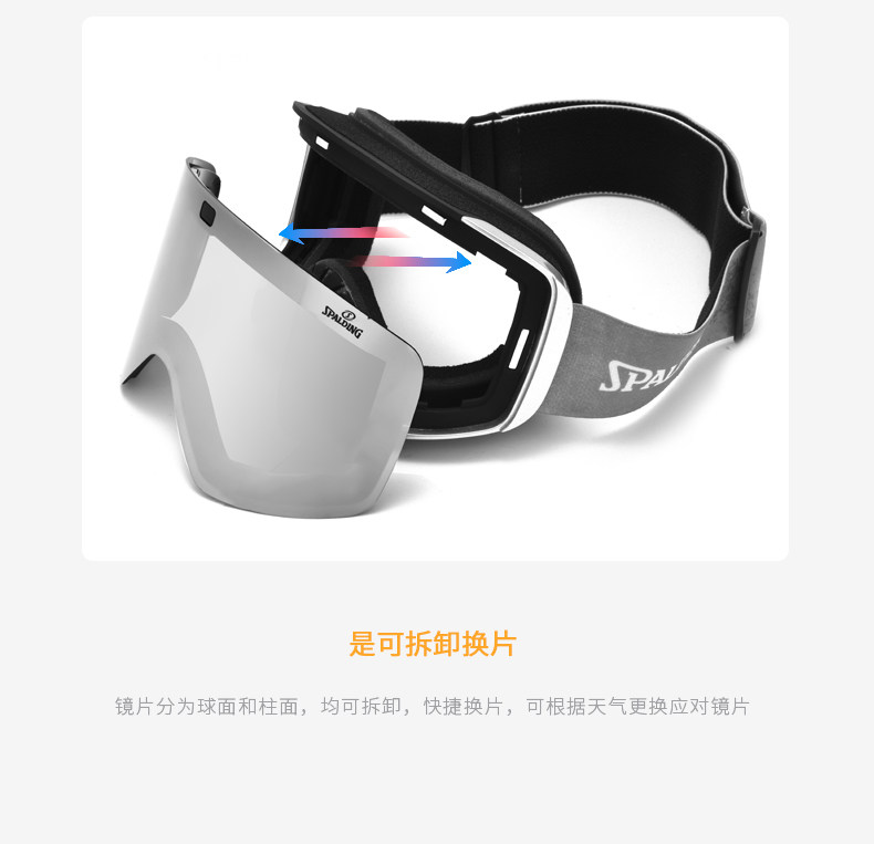 Spalding Sibadine Ski Mirror Sports Mirror Wind and Defense Fog HD Автоматическое освещение и захватывающие мужчины и женщины