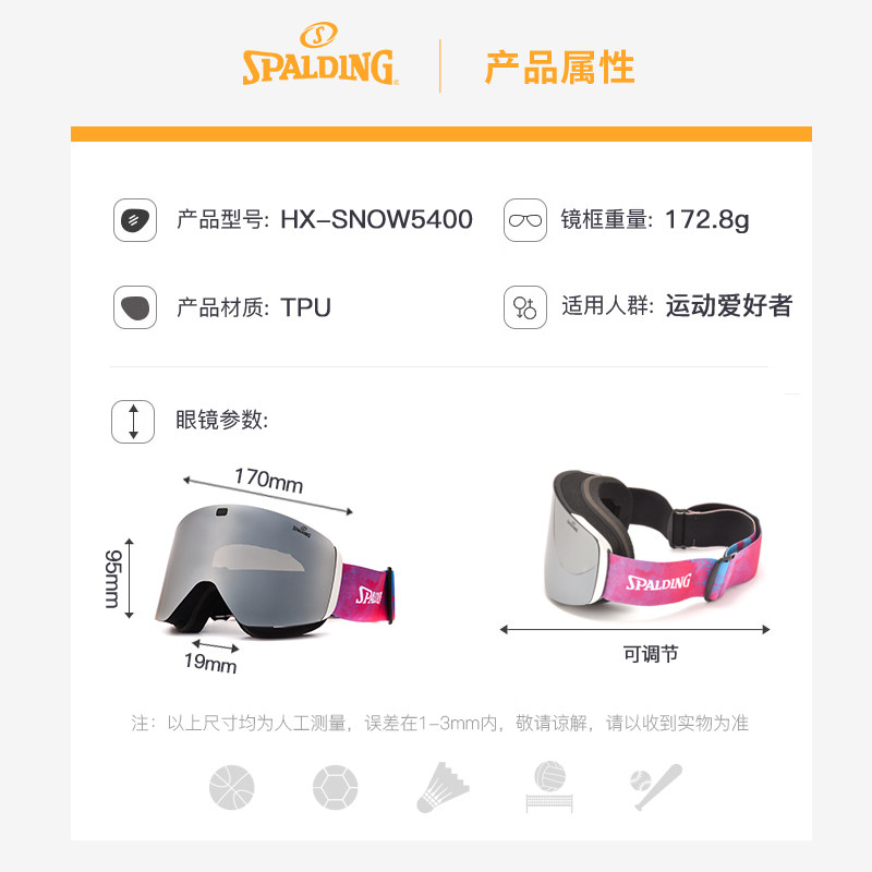 Spalding Sibadine Ski Mirror Sports Mirror Wind and Defense Fog HD Автоматическое освещение и захватывающие мужчины и женщины