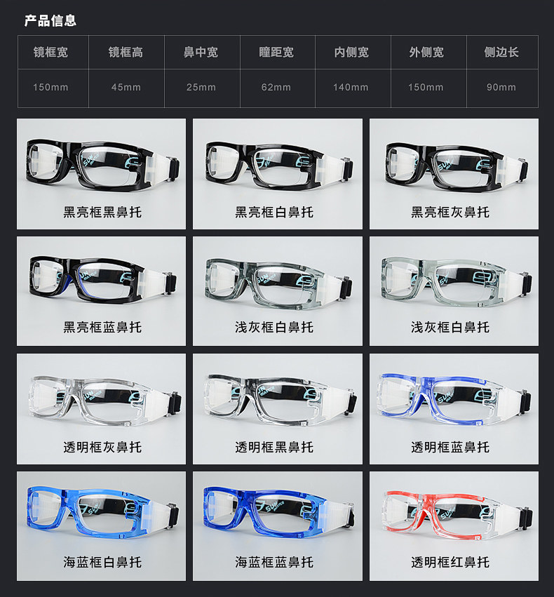 | Цвет каркаса: | Блестящая рама, Прозрачная кадр, Светло -серая рама, Морская синяя рама, Рама+1,61 не -кферическая линза, Рама+взрыв ПК -подверженные объективам, Рама+1,67 Ультра -типичные объективы, Рама+Взрыв ПК -подверженные туманному объективу, Рама+Mingyue 1.60 Ultra Tough Film, Кадр 1.61 смола анти-FOG |