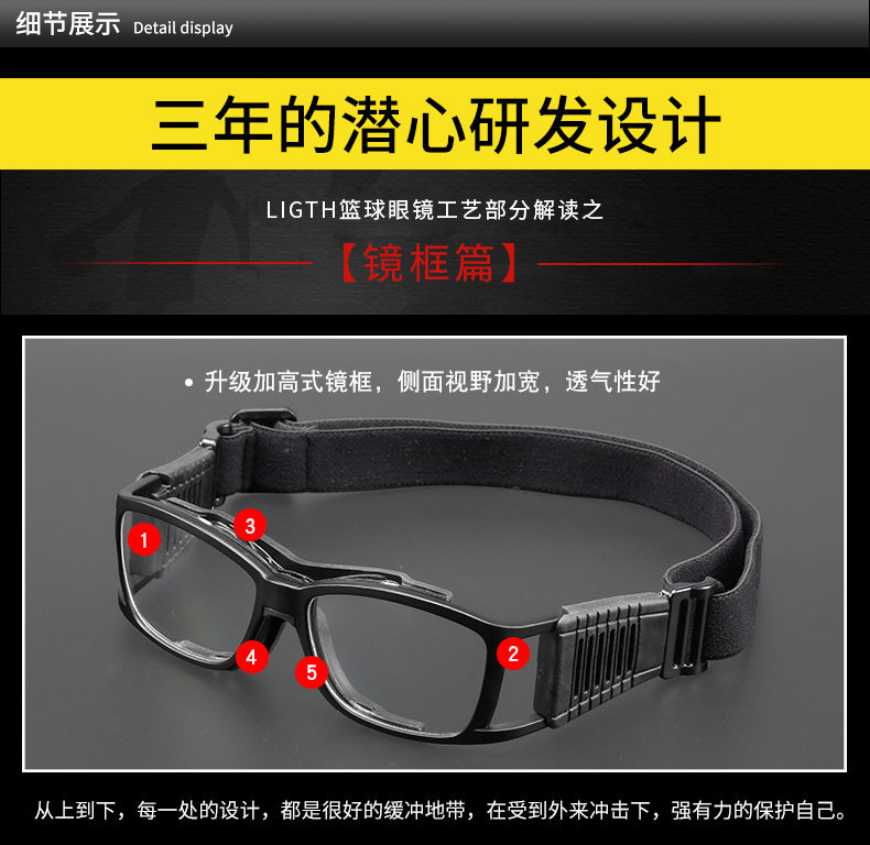 Лигт профессиональный спортивный защитный защитный миопия бокалы, играющие в баскетбол против ффо -анти -коллизионного зеркала на открытом воздухе футбол футбол