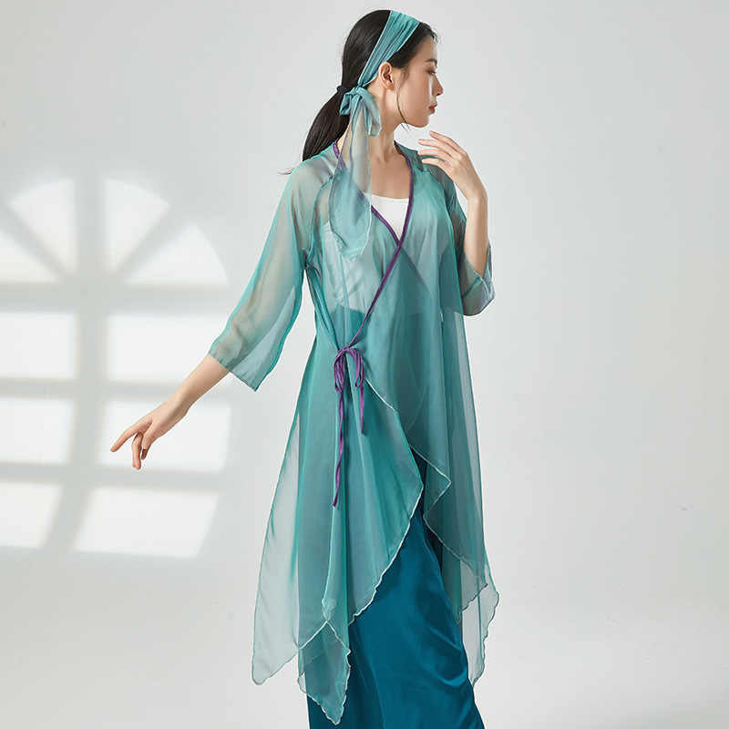 Классическая танцевальная зеленая змея Крест Крест Кружевы Китайский стиль Свободный зеленый марля, элегантный репертуар танцевальный сервис