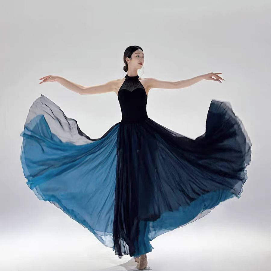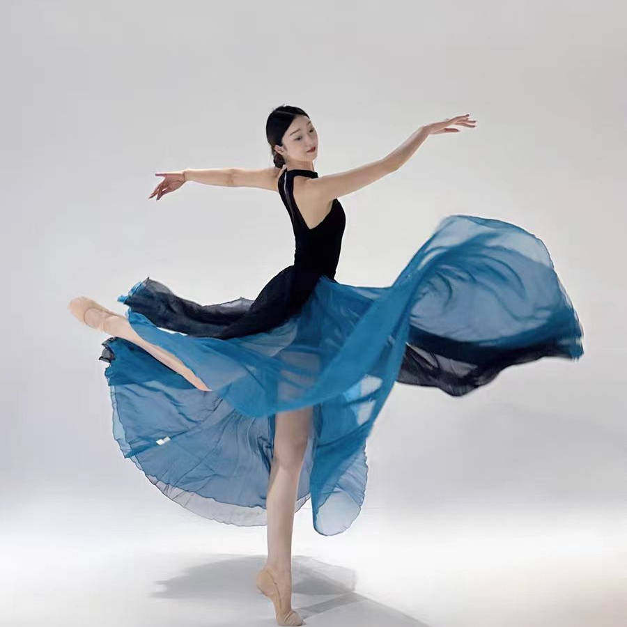 Двухслойная танцевальная юбка между облаками и классическими танцевальными костюмами, протекающей клеткой, большой юбкой подол, 720 градусами Цзяньганца летающих гусей