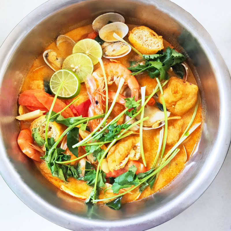 Импортировано из Таиланда, соус Lil Thai Tom Yum, основа для горячего горшка, свежий лемонграсс, южный имбирь, лимон и набор листьев лимона.