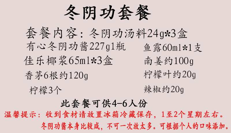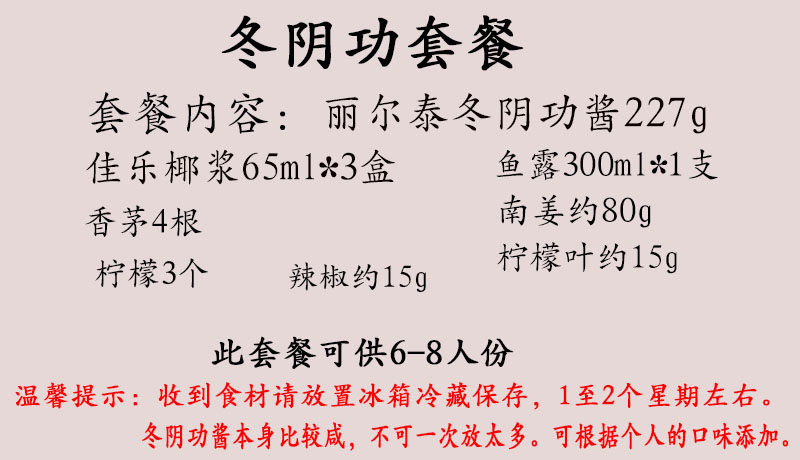 | Вкус: | Свежие ингредиенты Litai Dongyin Gong Sauce Package, Свежий материал имеет сердце Winter Yin Power Package |