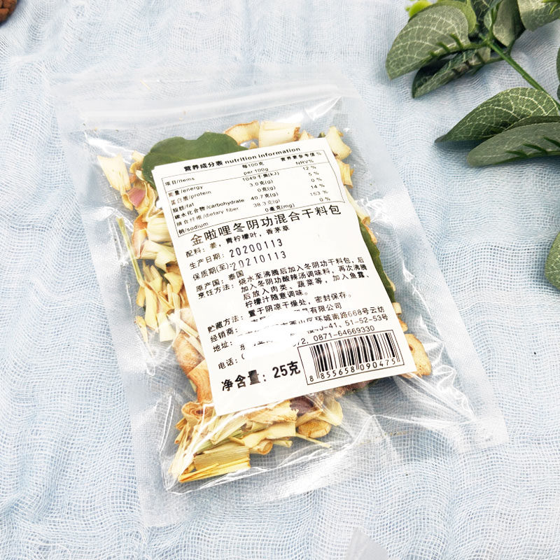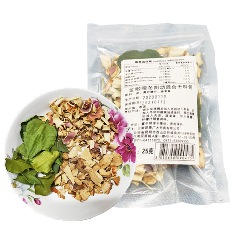 Пакет сухих ингредиентов для супа Том Ям Кунг 25 г Тайский Том Ям Кунг Основа для горячего горшка сушеный лемонграсс, южный имбирь и листья лимона 1 прием пищи 1 упаковка
