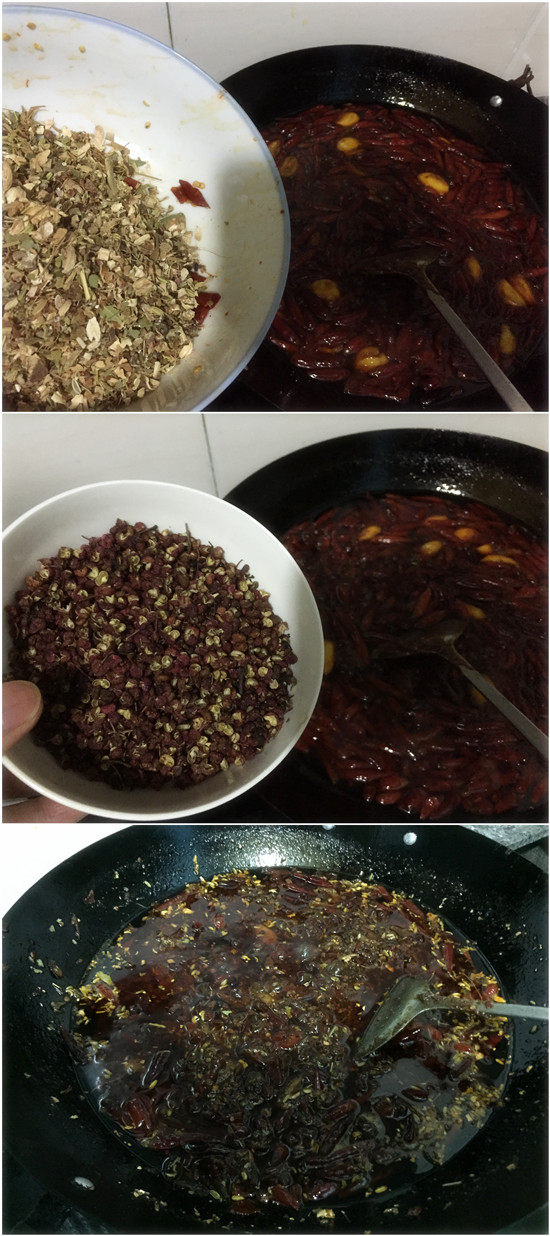 4. Затем добавьте горячий горшок в наш магазин, и перцы продолжают жарить в течение 5-10 минут, пока цвет специй не станет темнее в кастрюле.(Напоминание: роль специй в базе горячих горшков все еще важнее. Это не вкусно, если вы не бросаете несколько специй по желанию. Конечно, вы бросаете несколько специй по желанию, если специи Не превышайте стандарт, он также не будет неприятно. Это просто немного промежутка в горячем горшке от Чунцина.)