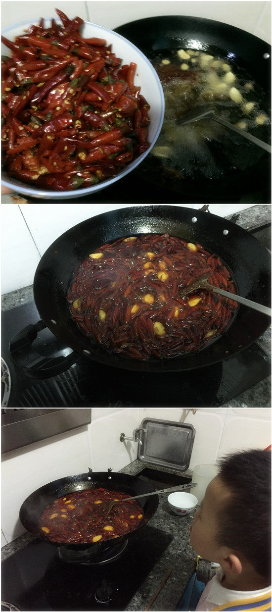 (Напоминание: жара этого шага очень важна. Не будьте жадными для быстрого, делайте это с высоким огнем, потому что это острый и аромат в перце и Douban еще не вульгарно в масле.)