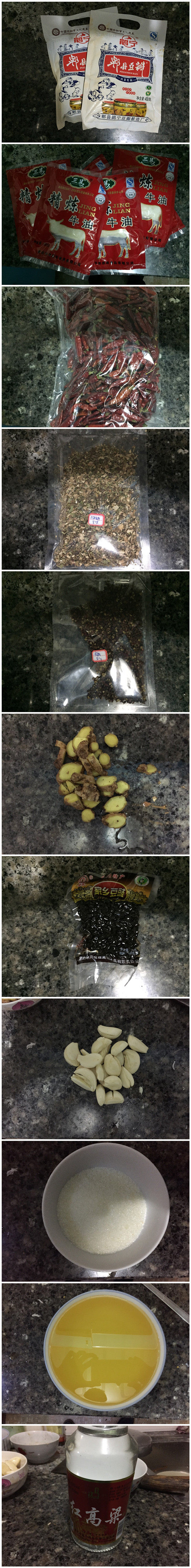 Подготовленный материал: 1000 граммов масла рапса,масло600 грамм,Пиксиан Дубан600 грамм,Высушенный перец200 г,Sichuan Peppercorn75 граммов, 50 граммов имбиря, 100 граммов чеснока, 50 граммов сахара, 50 граммов ликера,Темпе100 г,Горячий горшок специи80 граммов