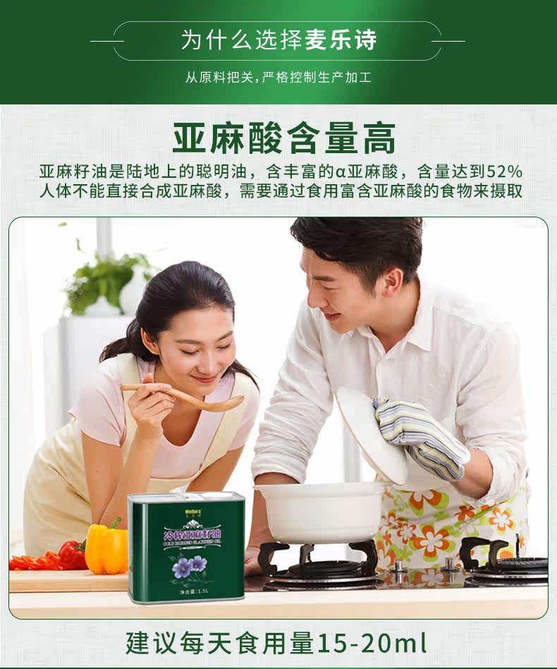 Стихотворение McLei 1 класс холодное давление девственное линейное масло 1,5 л Дом пищевое масло льня