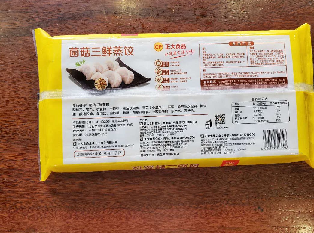 Zhengda Паристые пельмени грибы Три свежих парированных пельмени быстро -фронзовый микроволновый нагрев и салат на 20 может быть установлен