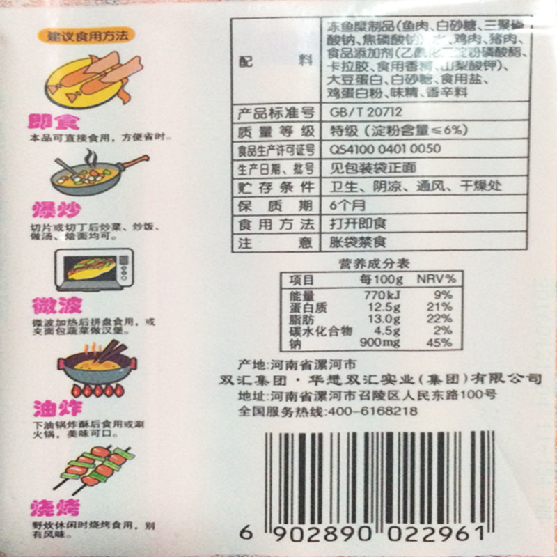 双汇 Колбаса с колбасой с рыбой мясо ветчины 50 г*5 мешков с мгновенной лапшой