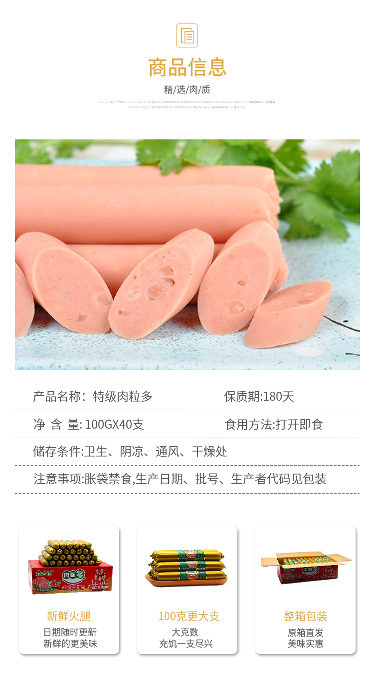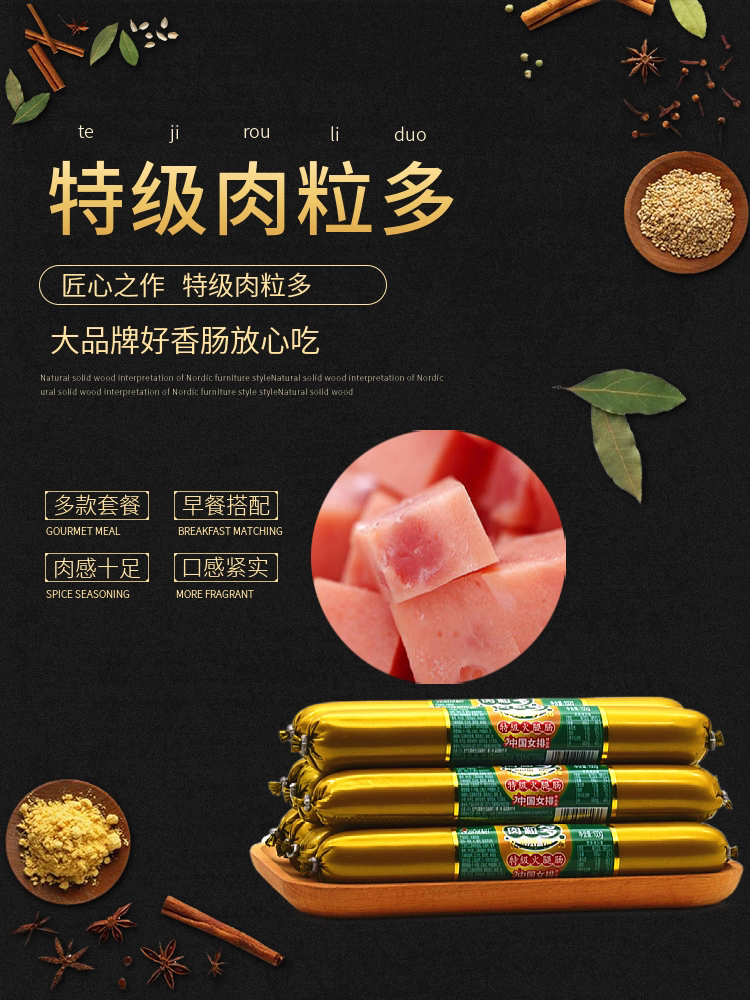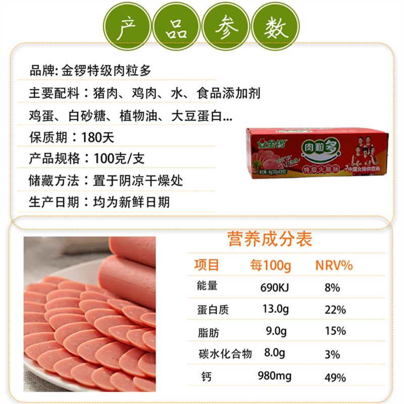 Золотая гонская хэм -колбаса Специальная мясная гранулы и колбасовое содержание крахмала ≤6%100 г полная коробка 40 Мясовая колбаса Мгновенная лапша