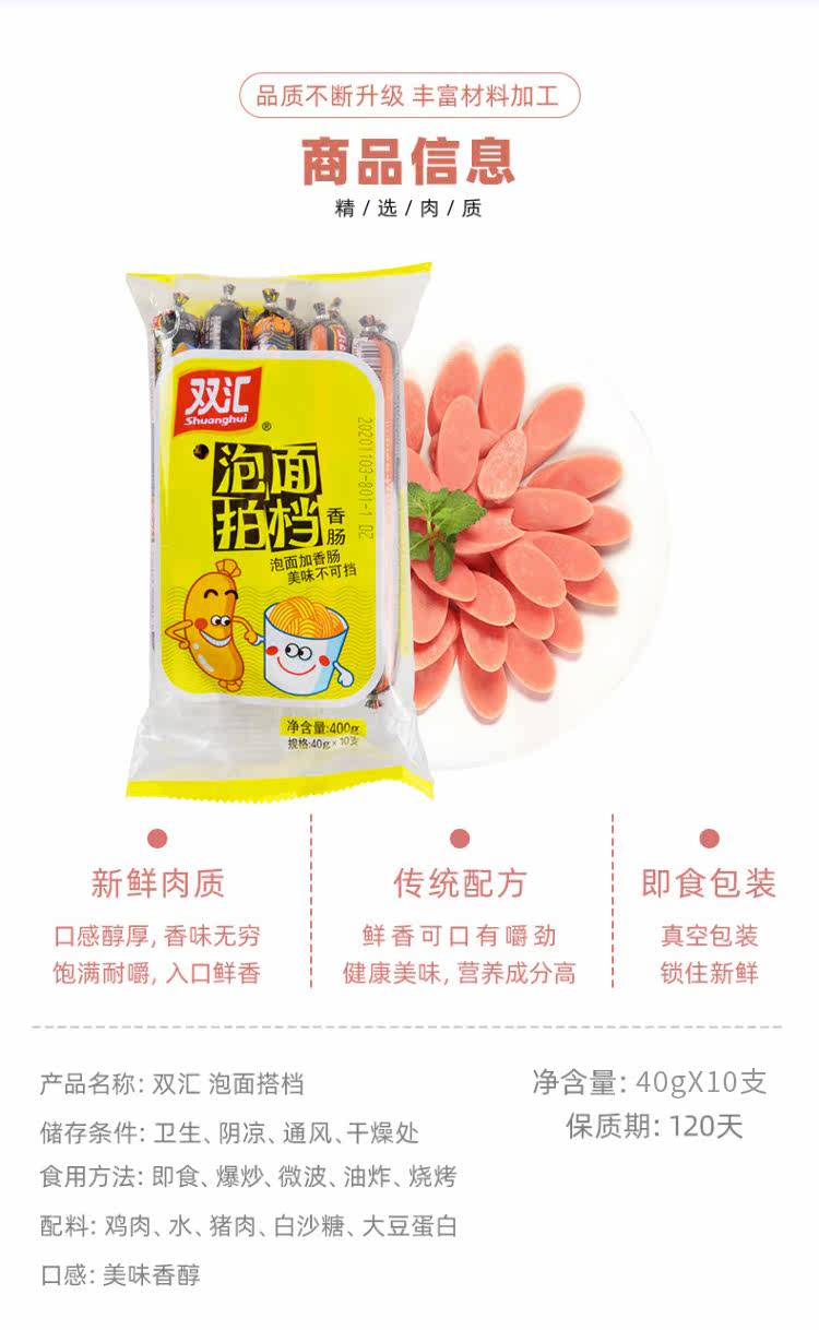 双汇 Sub -Noodle Партнерская колбаса 400G на гриле колбаса мгновенная хэм -колбаса 40G*10 мясо повседневные закуски закусок