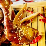 СущностьОстрый мясо кролика в вкусной вакуумной сетке красная приготовленная на кухня