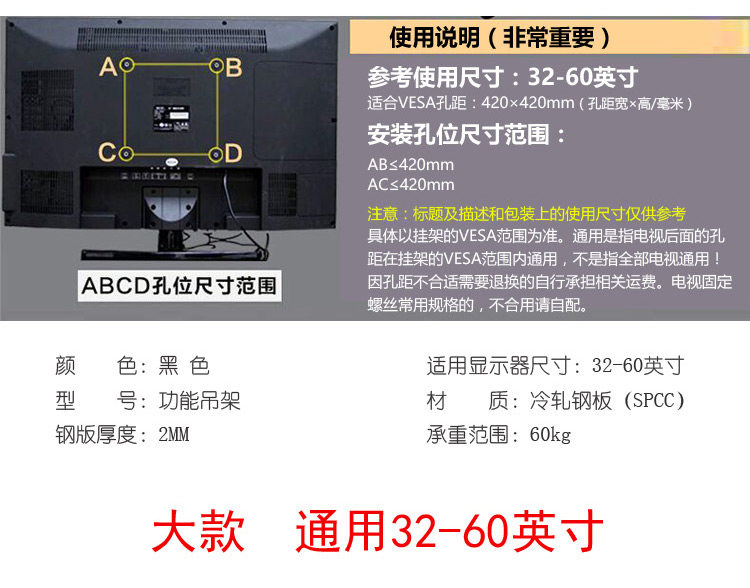 Универсальный крутящийся телескопический телевизор, 60 дюймов, увеличенная толщина