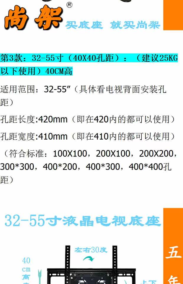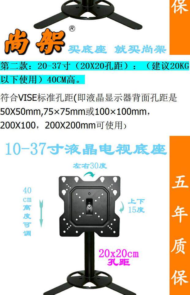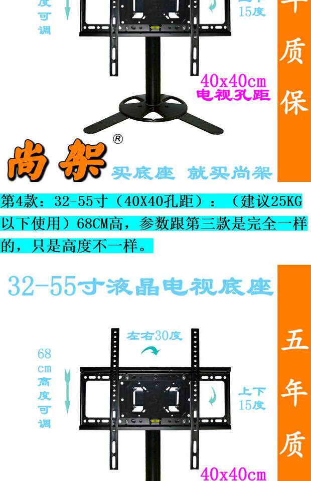 | Цвет: | 10-32 дюйма 40 высотой (расстояние 10x10 отверстий), 20-37 дюйма 40 высотой (расстояние в отверстия 20x20), 32, 40, 40x, 32-55-дюймовый 68 высокий (расстояние 40x40 отверстий) |