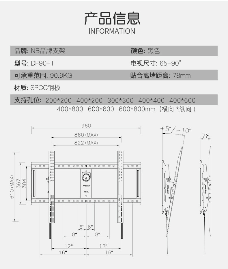Nb df90-t 60-70-90-дюймовый телевизор GM подвесной стены SMEDY Регулируемая светящаяся телевизор