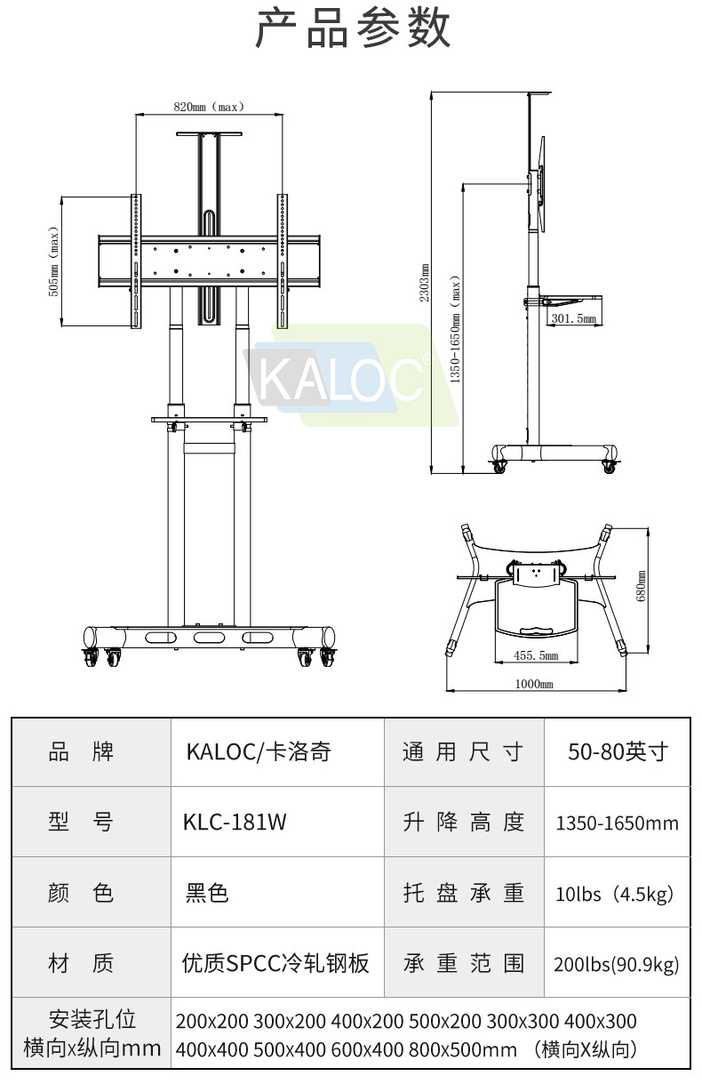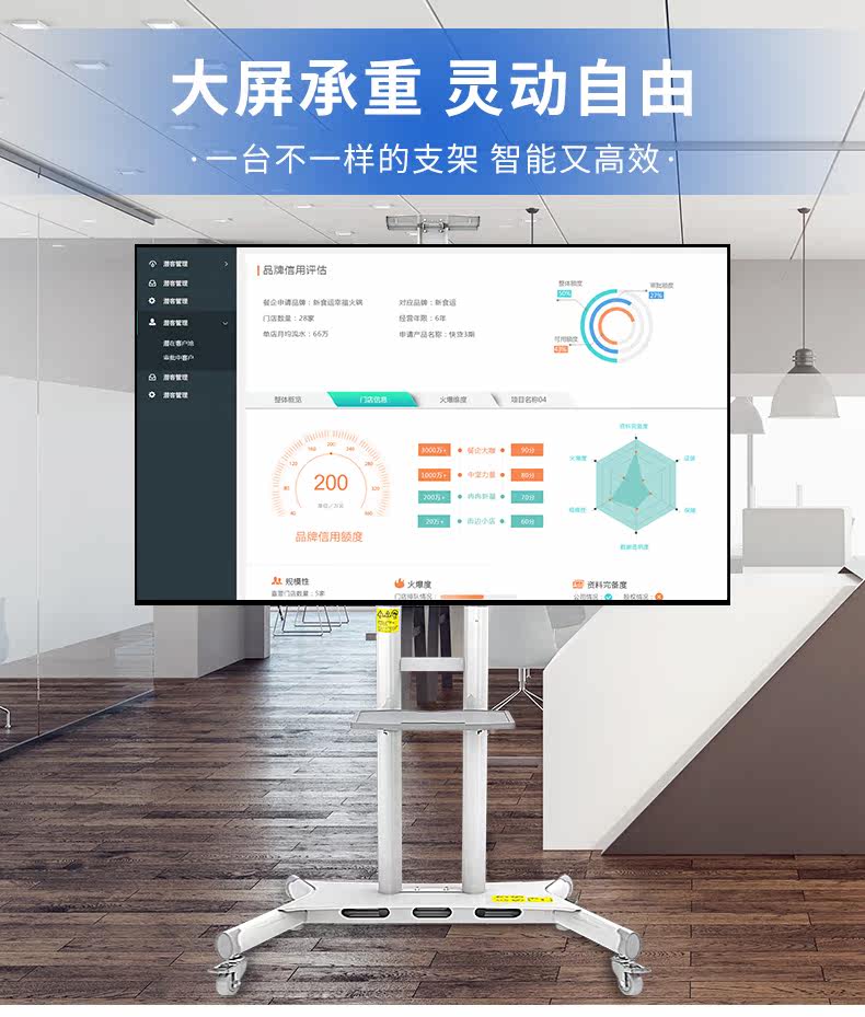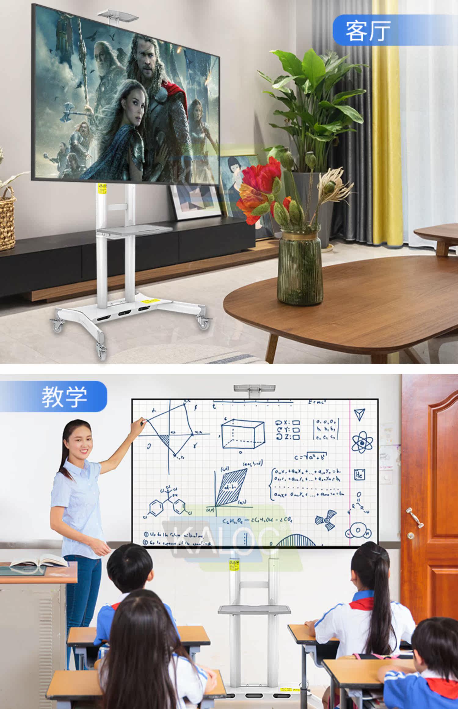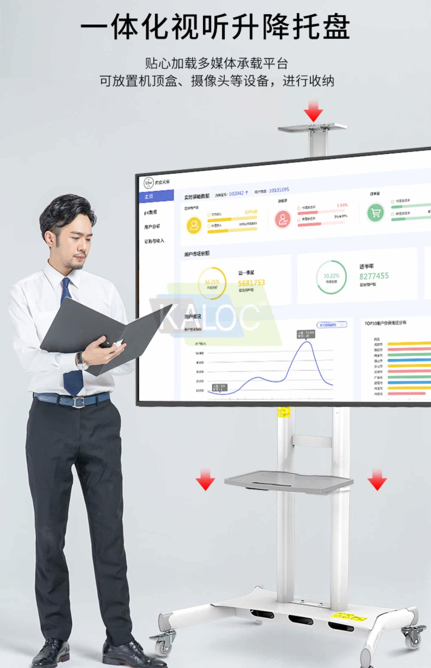 Калок-телевизионная поддержка пола 65 70 75-дюймового сенсорного экрана, мобильный кронштейн, корзина