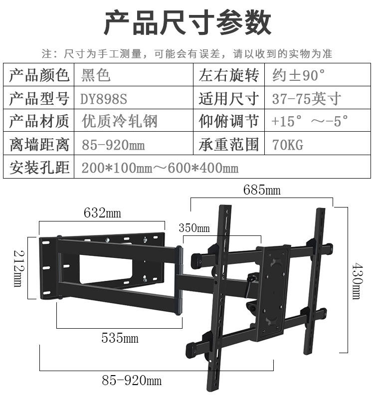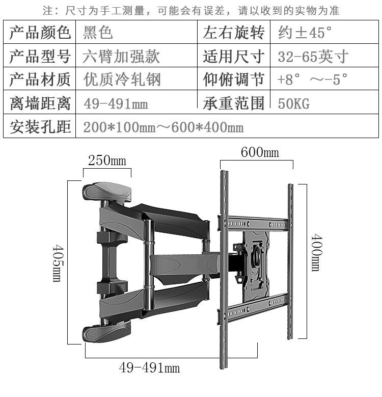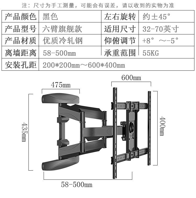 Стенная ротор ротор -ротор телевизионного кронштейна, универсальный Hiso Honge Hisense Tcl Xiaomi 32/55/86 -дюймовый полки