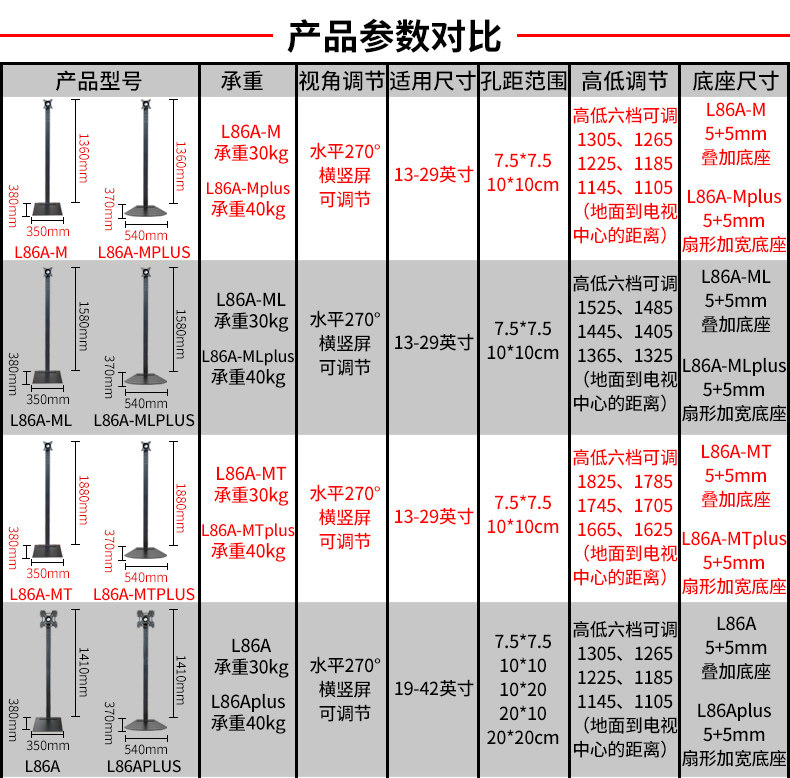 • L86A-MPLUS Горизонтальный и вертикальный экран, свободно переключающийся на расстояние между 100*100 мм.
