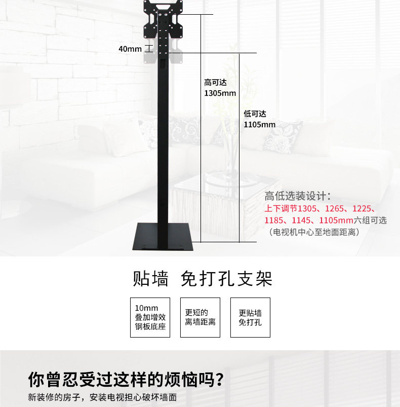 Мониторинг горизонтального и вертикального экрана подставка по полу Универсальный телевизор мозговой стойки Вращение 360 Угла наклона регулировка отверстия 6