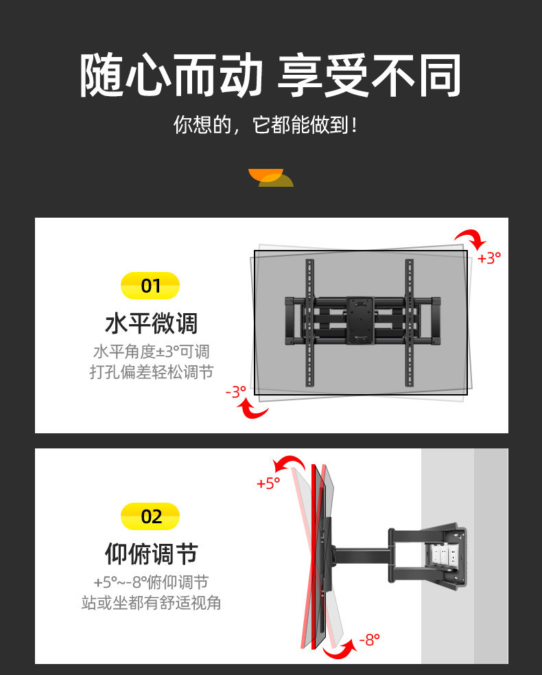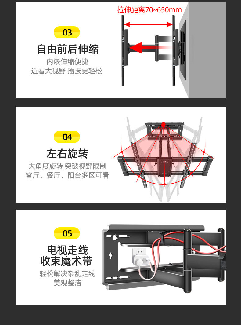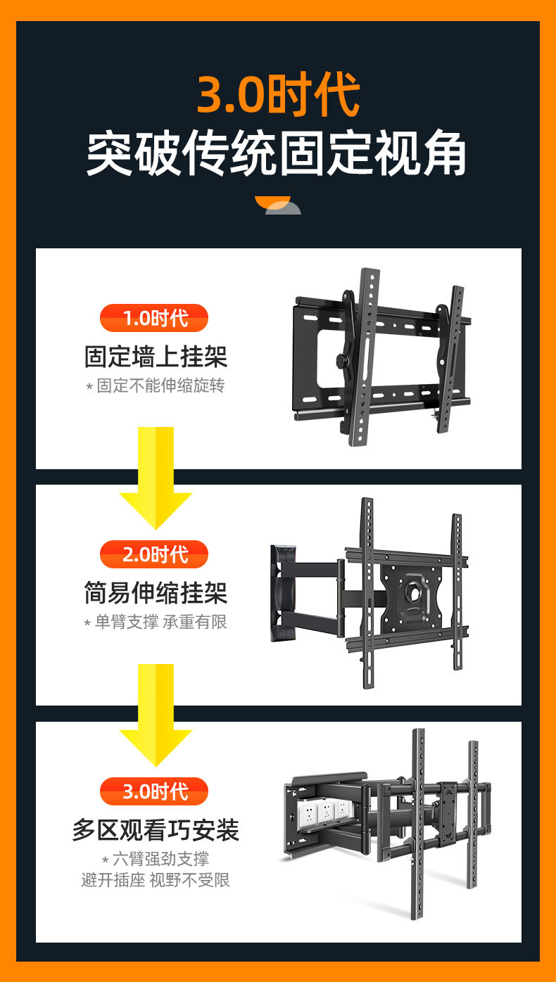 Подходит для Hisense Vidda 55V7F BRUS TV Специальная висящая рама, растягивающаяся вращающаяся стена, висящая стена 55 60