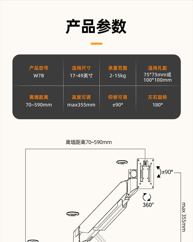 Цвет: 17-32-дюймовый горизонтальный и вертикальный экрановый вращающийся нагрузкий подшипник 2-9 кг, 24-49-дюймовый горизонтальный и вертикальный экрановый нагрузка., 24-49-дюймовая горизонтальная и вертикальная модель короткого рукава экрана