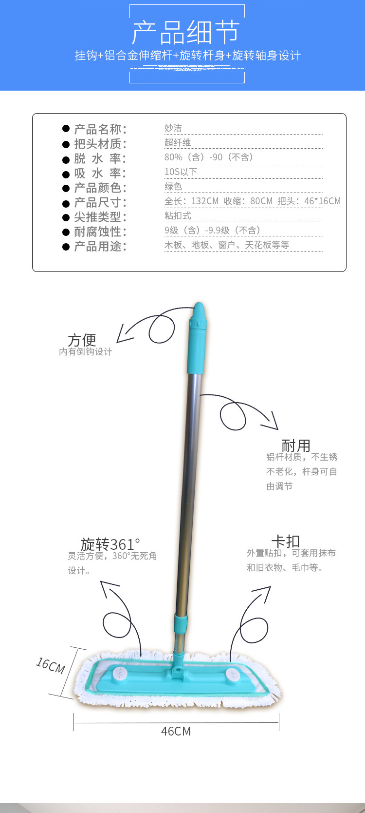 妙洁 Домохозяйственная таблетка швабня деревянный пол перетаскивание 360 -дегрообразной ротации магическая наклейка липкий трейлер Новый и старый случайная бесплатная доставка