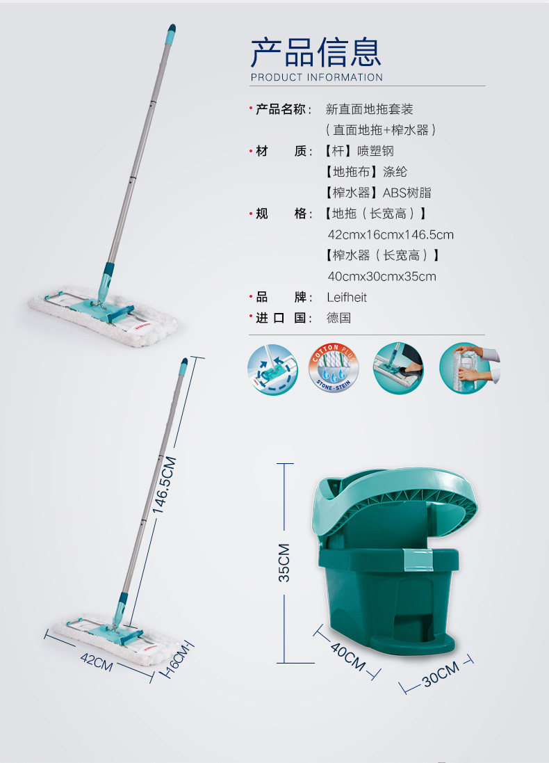Counter -counter Leifheit прямое перетаскивание на борьбе с плоской шваброй.