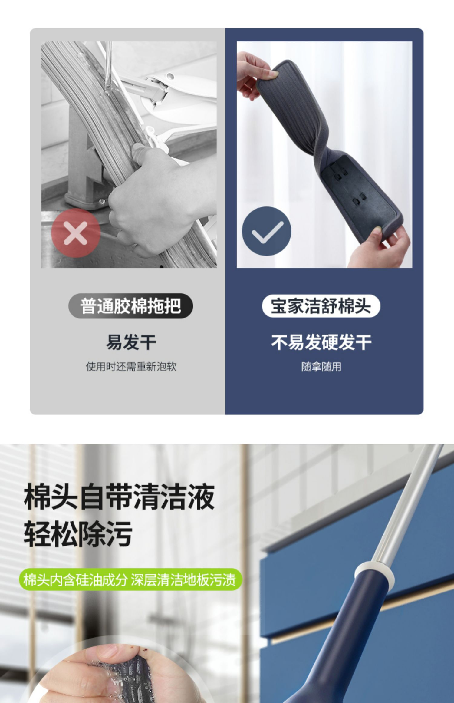 Baojiajie Tablet Mop 2022 Новое домашнее использование бесплатно -с водой -поглощающим пирс влажный и влажный двойной один -один -половой артефакт чистый