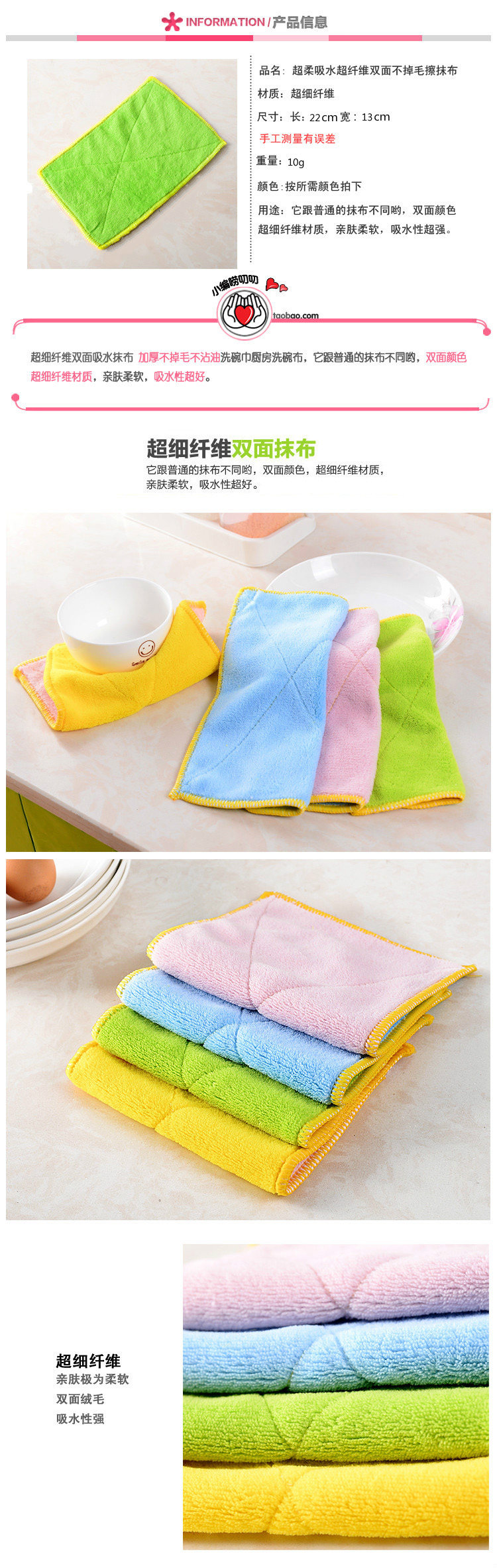 Ультра -фарковое волокно с двойным утолщенным водопоглощенной тканью кухонная посудомоечная машина кухонные полотенцы без волос