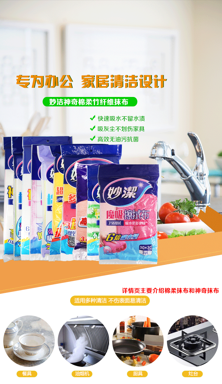 妙洁 Смыть ткань для мытья посуды Официальная кухня.