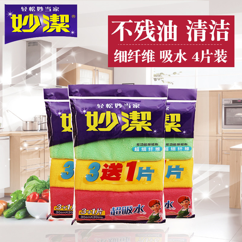妙洁 Кухня многофункциональная ткань протирания 4 кусочки для удаления масла и сточных вод, водопоглощающие волокно -волокно.