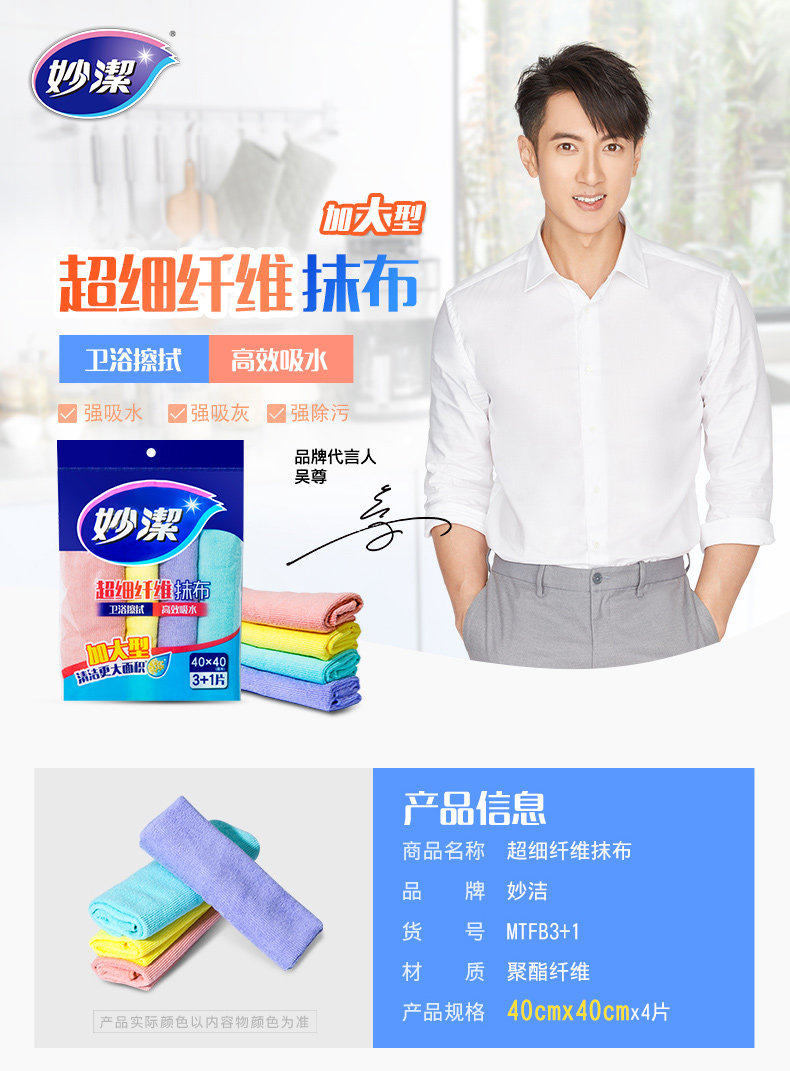 妙洁 Большое многофункциональное гигиеническое полотенце, 4 штук, хорошо впитывает воду