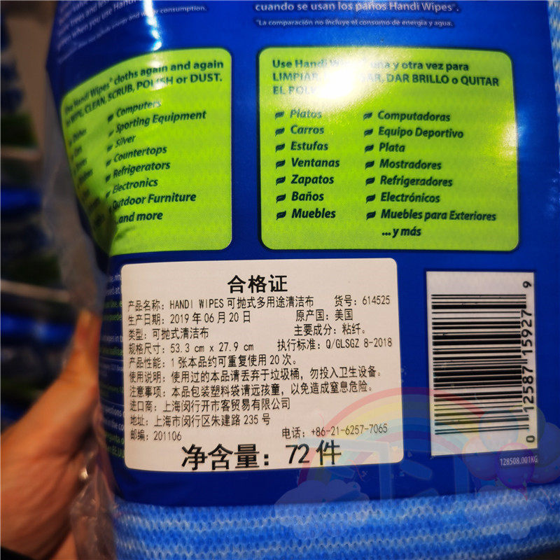 Shanghai Costco приобретает American Clorox Multi -Purpose Cleansing Clatee можно повторно используется в 20 раз в общей сложности 72 штук