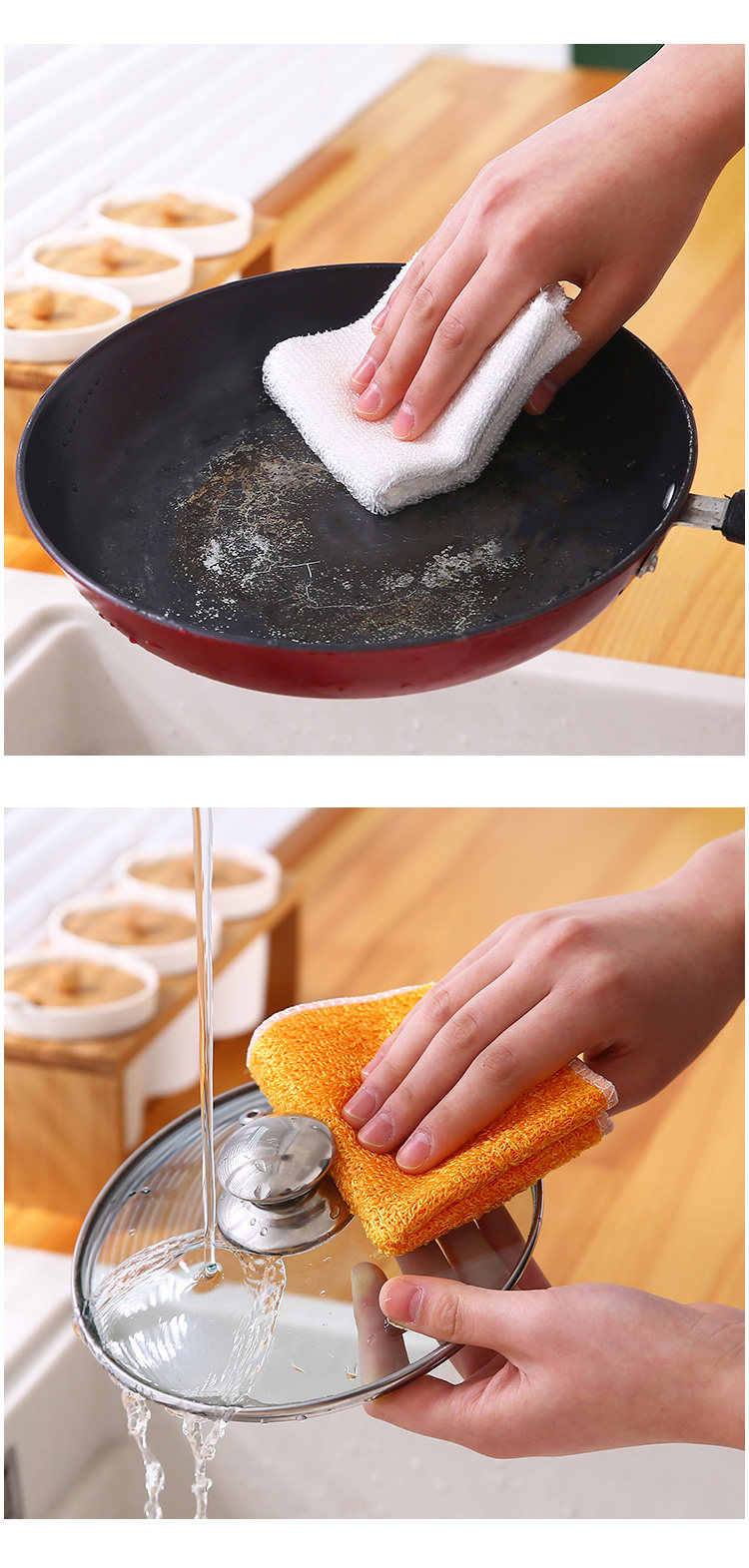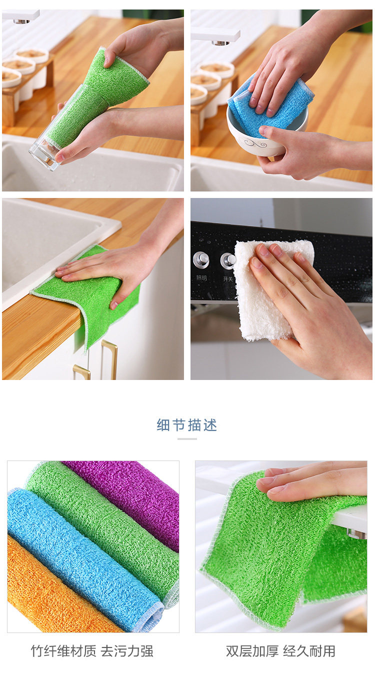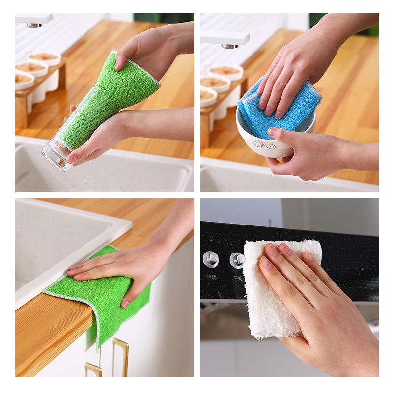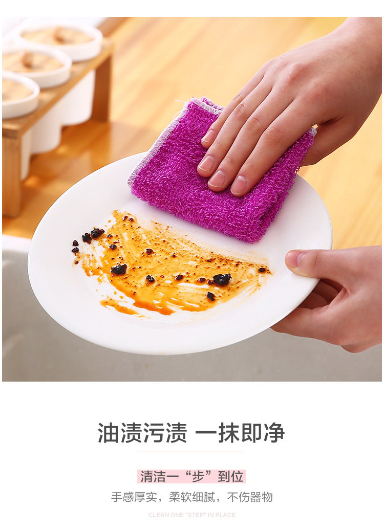 Двухслойная утолщенная тряпка для мытья посуды из бамбукового волокна, кухонная антипригарная масляная губка, чистящая ткань, тряпка для удаления масляных пятен.