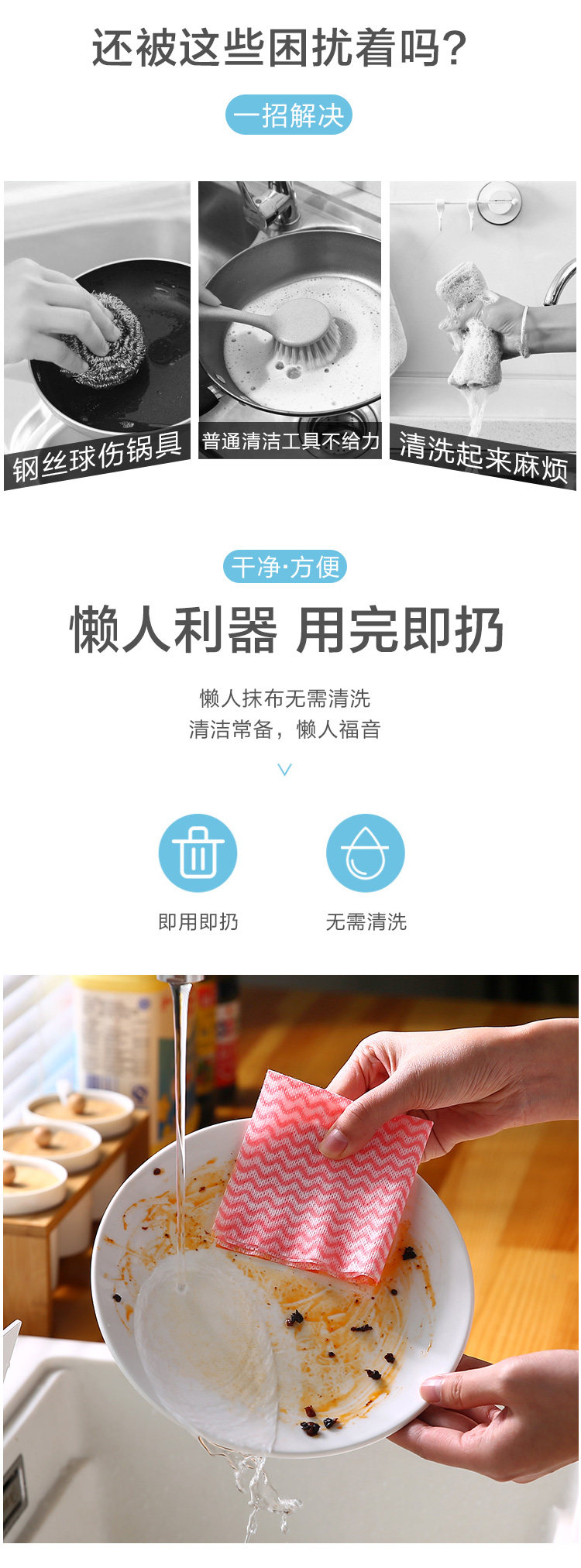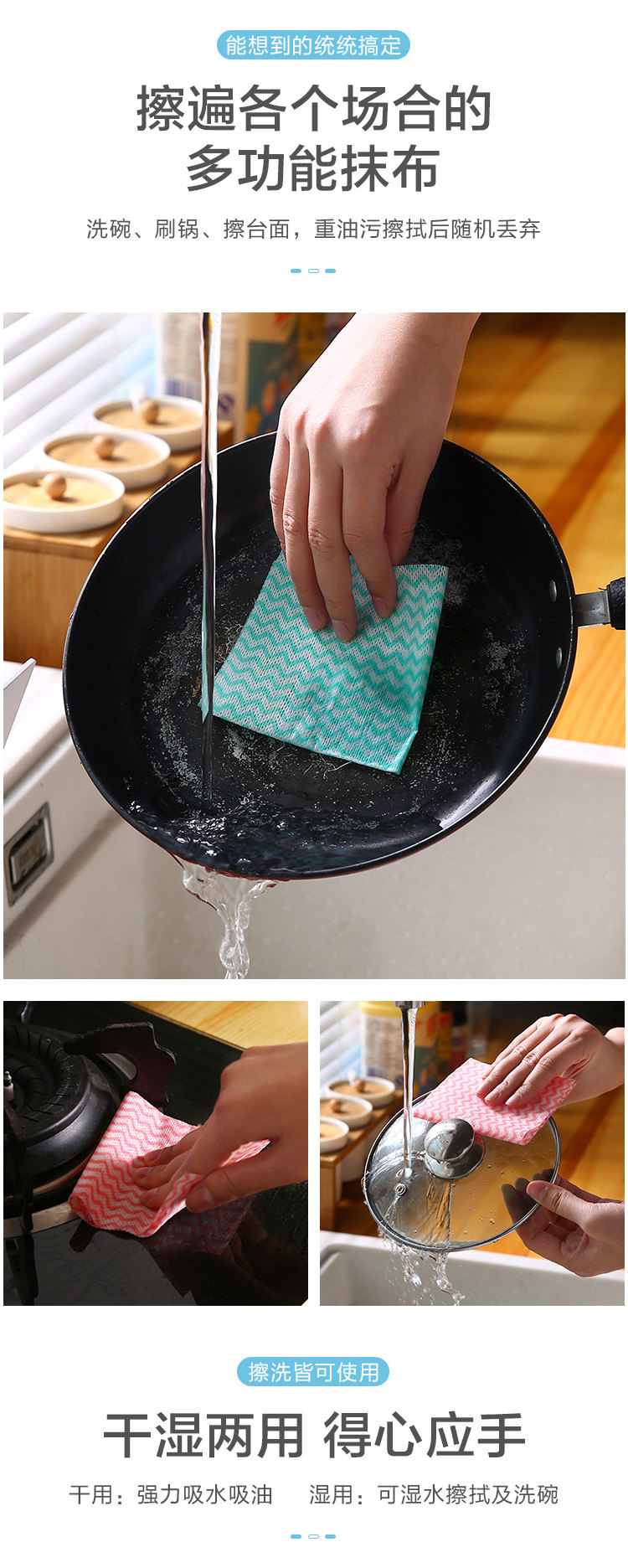 Съемное одноразовое нетканое кухонное полотенце, тряпка для кухонного стола, ленивая губка для мытья посуды, двойного назначения для удаления масляных пятен.