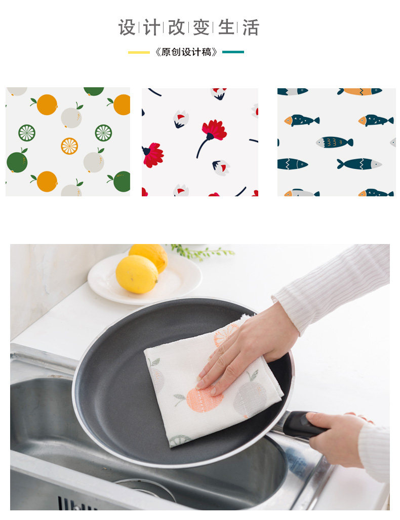 Домашняя кухня Специальная тряпичная деревянная волокна 8 -Печатный квадратный шарф впитывает воду без масла и сгущайте двойную ткань для мытья посуды