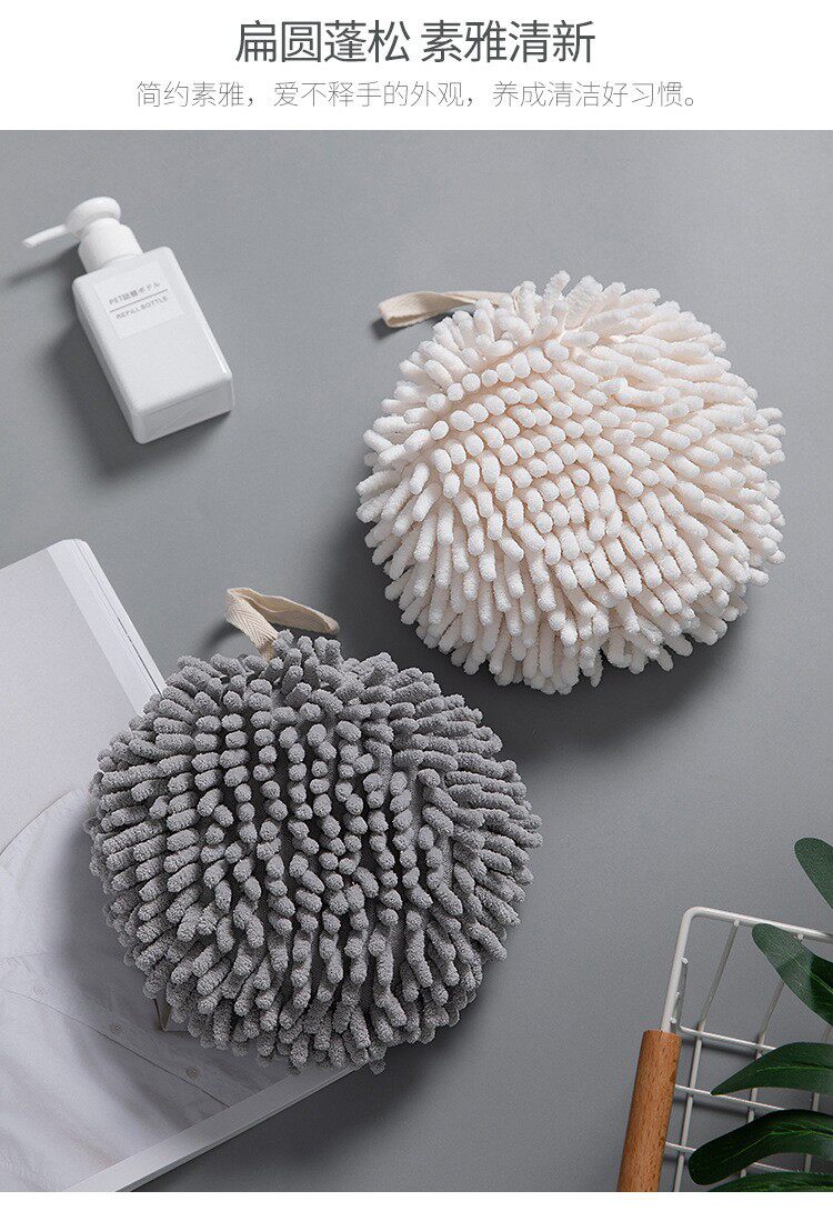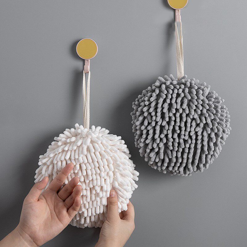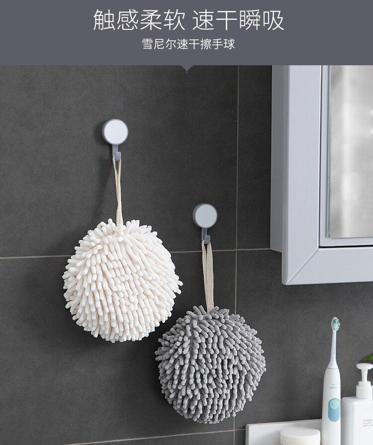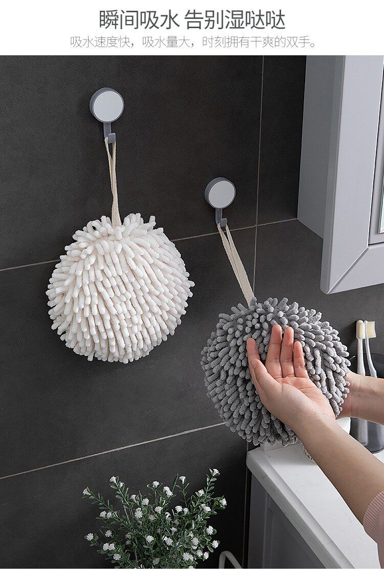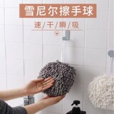 Снежный потирая гандбол под висящим ванной комнатой утолщенной водяной поглощение, высушивая полотенца рук, домашняя кухня, без лакона для волос тряпка