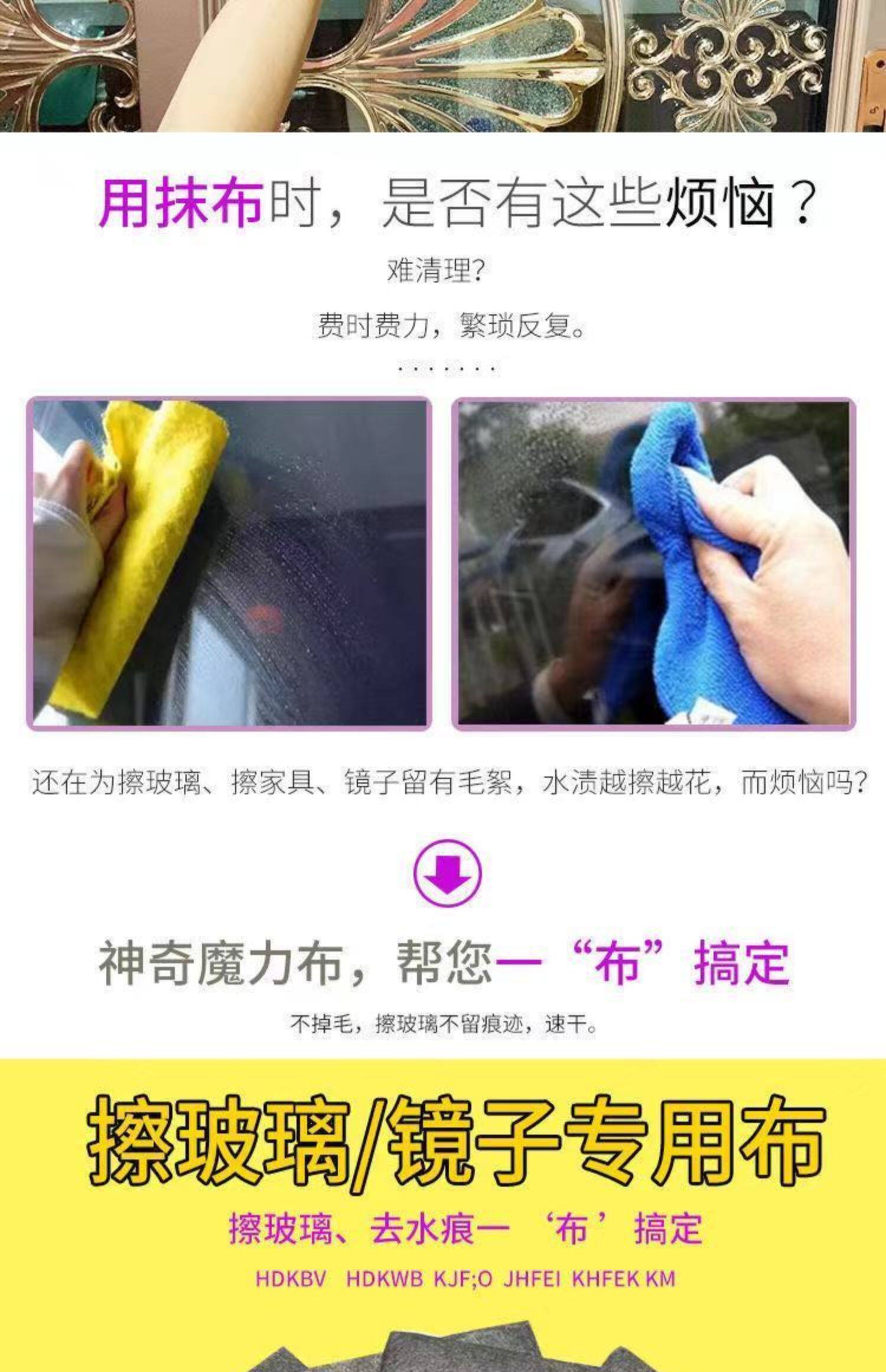 Протрите стекло, протрите волшебную ткань, потрите зеркало стеклянного ткани.