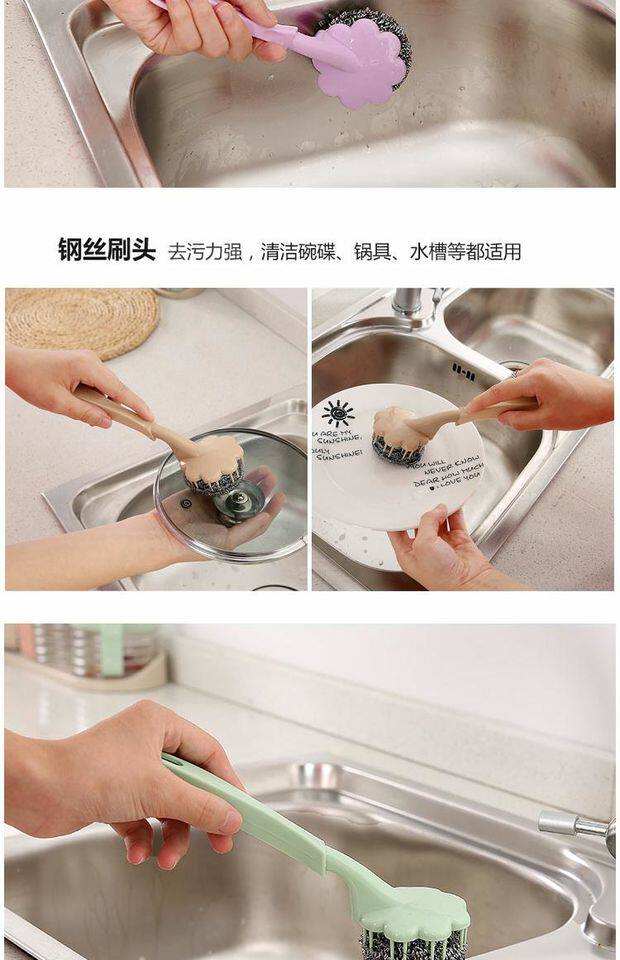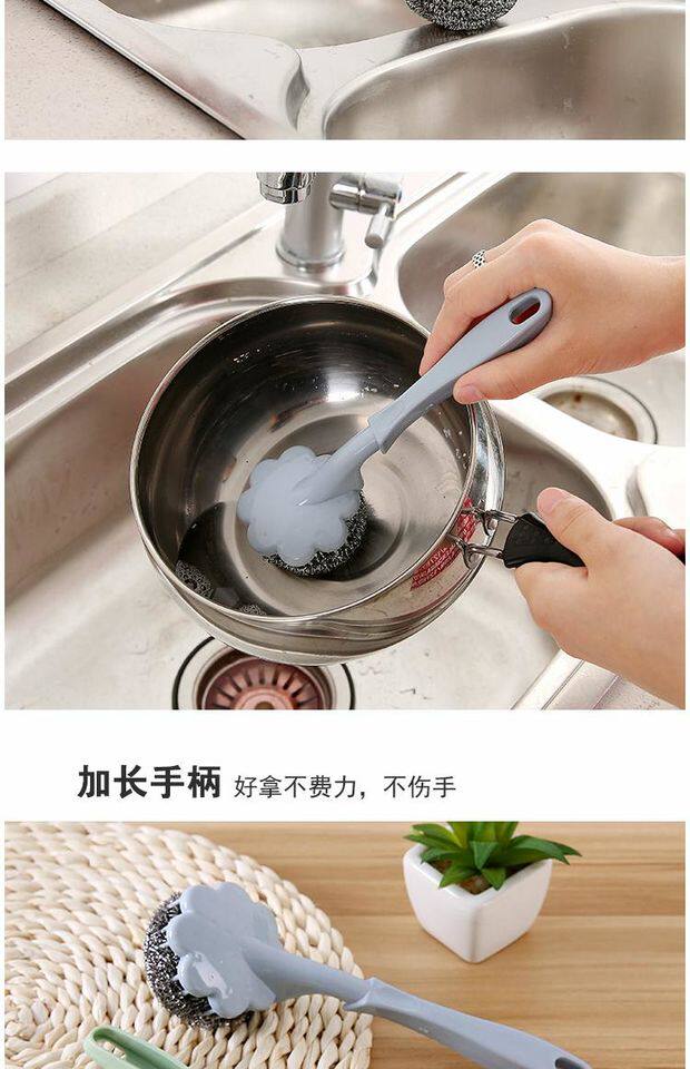 Стальной шар -партия чистки длинной ручки с ручкой мыть посудомоечную машину кухня дома щетка нано -нано -нано -не рана