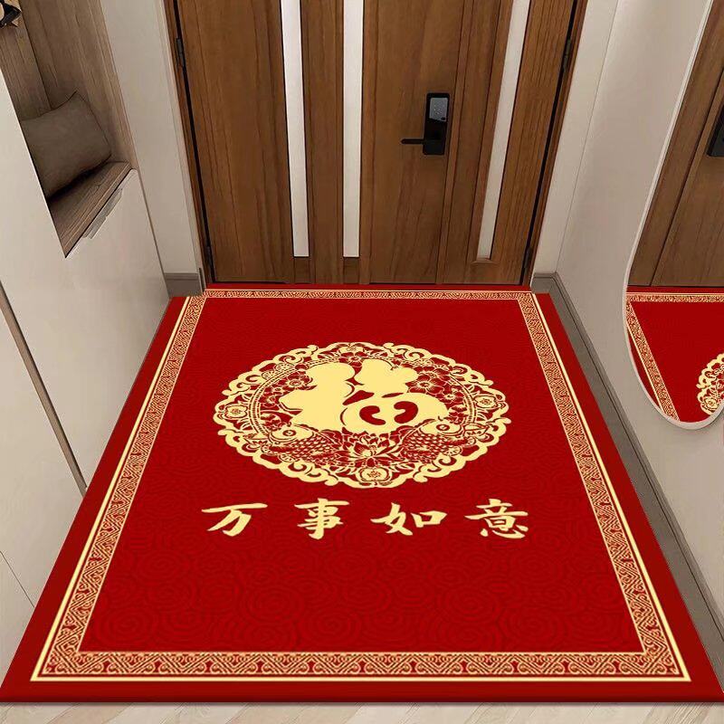 Красный праздничнный нескользящий ковер для домашнего использования, защитный амулет, коврик, китайский стиль