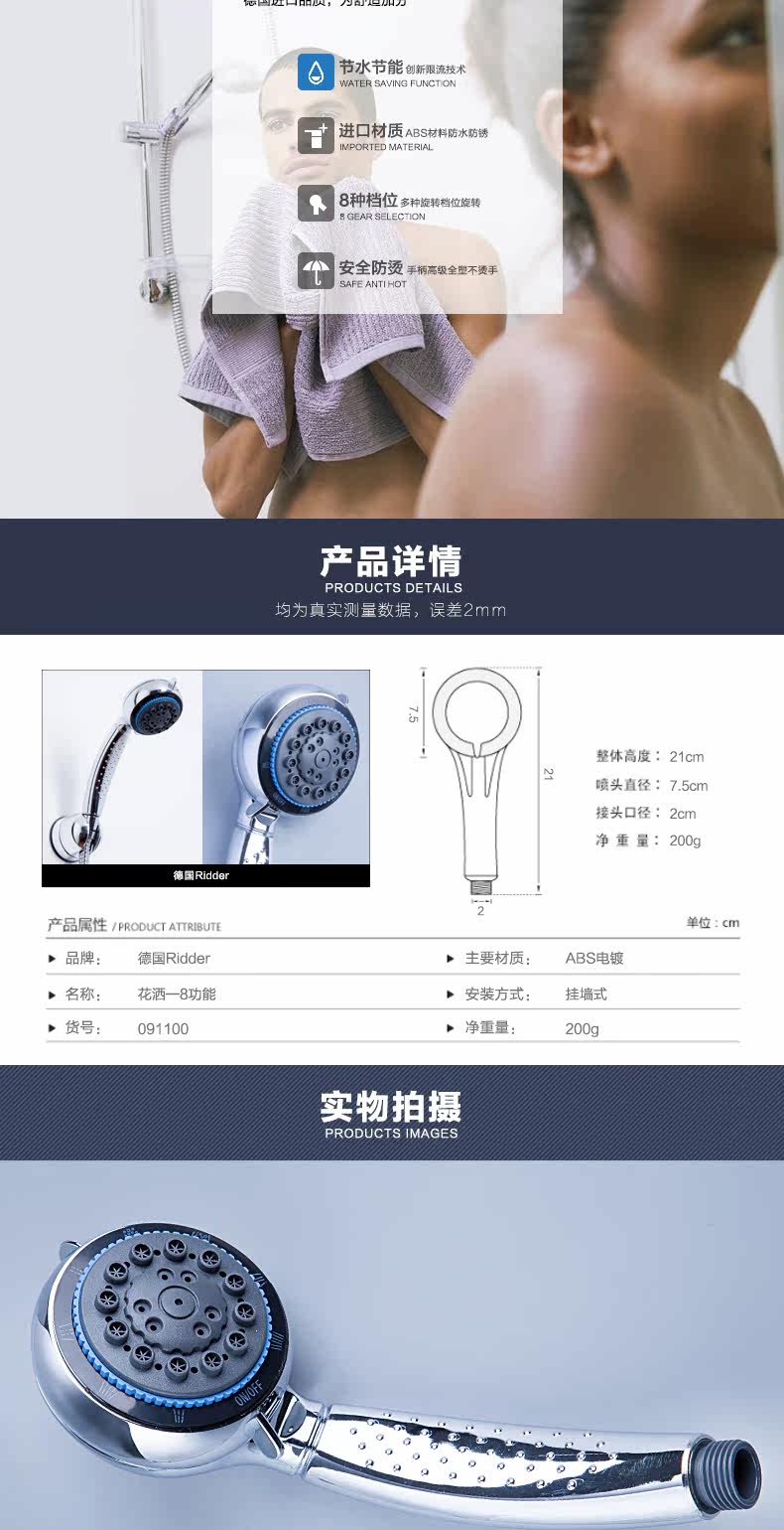 RIDDER Немецкий душ душ осадки для душа в ванной комнате горячий и холодный душ хром 091100