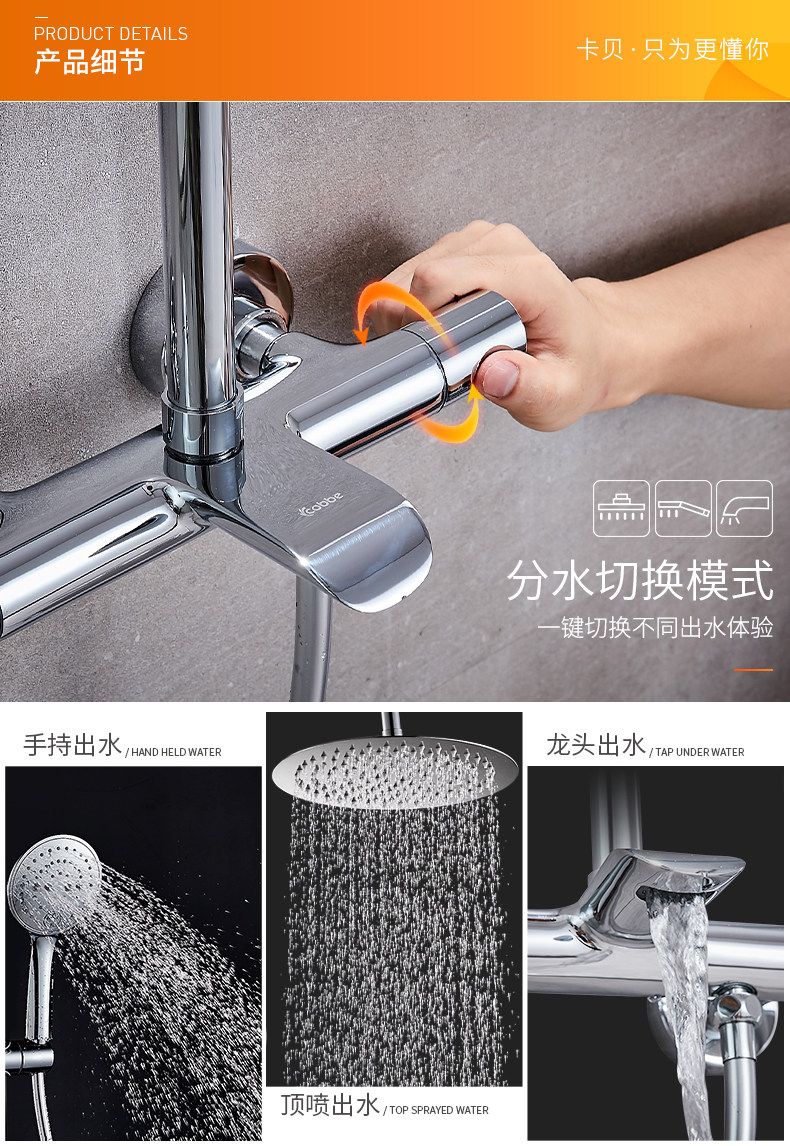 Кабер Хенцин душ набор душа в ванной комнате интеллектуальная смешанная водяная клапана висящая стена -велосипедная сансианская туалетная капитан