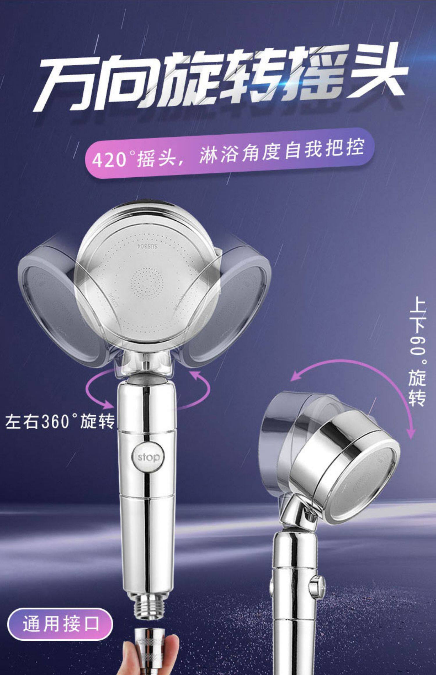 - Гальванизированная серебряная насадка для душа + спринклерный шланг + перфорированное крепление к крючку