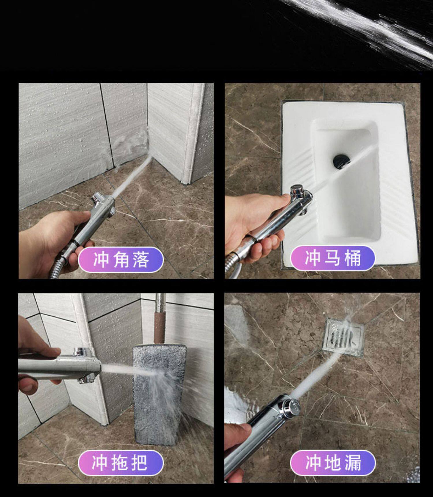 - Фарфоровая насадка для душа + шланг для разбрызгивания + перфорированное сиденье с крючком