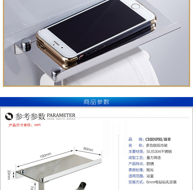 Освобожденная 304 туалетная бумага из нержавеющей стали туалет туалет, подставка для катящей бумаги, мобильный телефон, санитарная бумажная стена